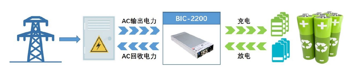 隨著“凈零碳排”目標(biāo)的推進(jìn),新能源汽車(chē)、光伏等產(chǎn)業(yè)不斷發(fā)展,帶動(dòng)鋰電池產(chǎn)業(yè)規(guī)模持續(xù)擴(kuò)大。在鋰電池產(chǎn)業(yè)發(fā)展中,無(wú)論是在生產(chǎn)端的充放電測(cè)試,還是到家用儲(chǔ)能系統(tǒng)的備用能源,雙向電源都扮演了不可或缺的角色。明緯雙向電源 BIC-2200 系列適用于各類(lèi)電池生產(chǎn)工廠。在電池化成與分容階段(如圖1.),使用 BIC-2200 對(duì)電池充電,同時(shí)也可將電池釋放的能量回饋至電網(wǎng)供其他 AC 設(shè)備使用,降低企業(yè)用電成本。
