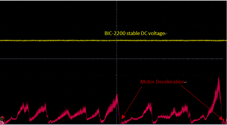 圖 2. BIC-2200 在馬達(dá)減速期間穩(wěn)定輸出電壓